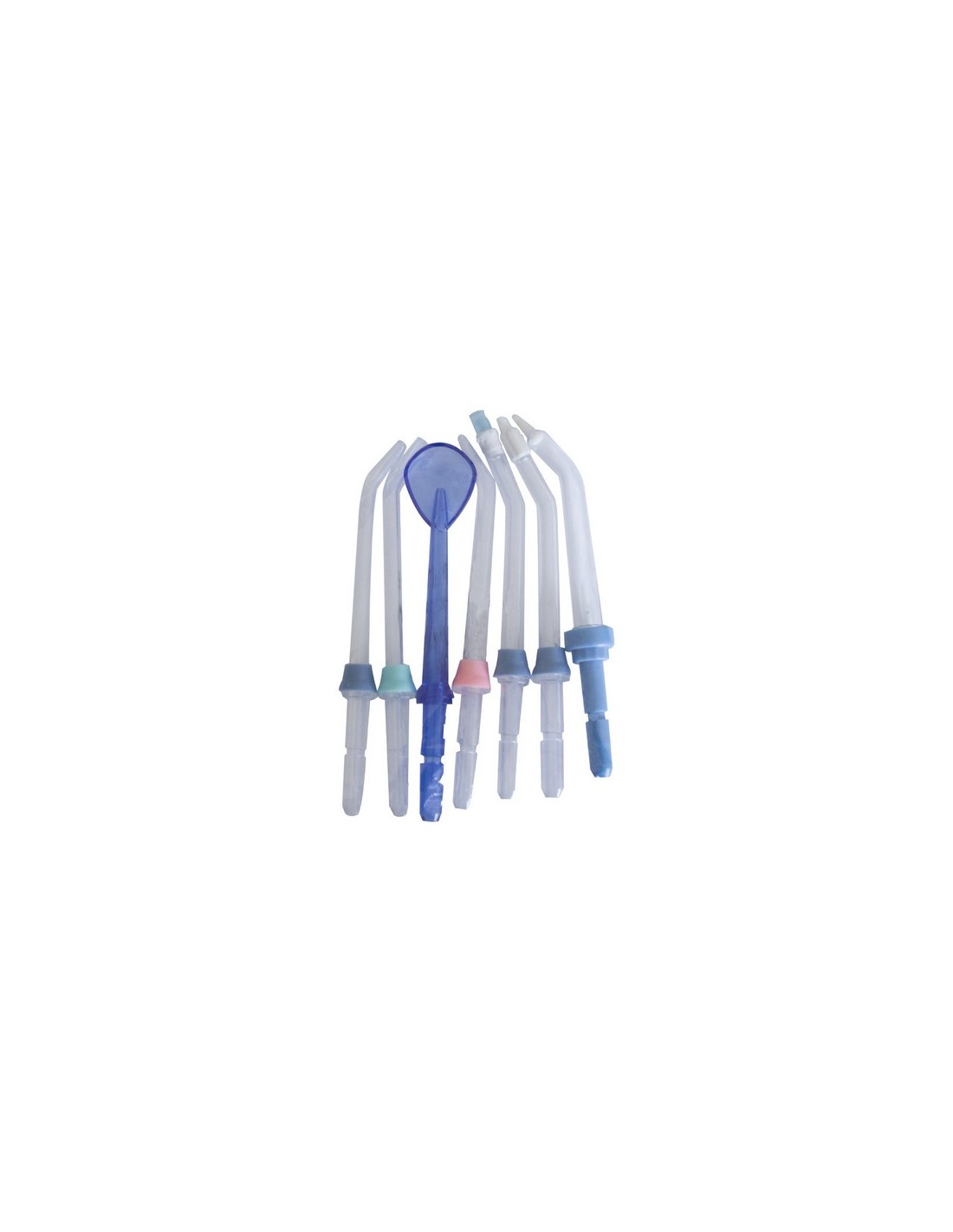 Irrigador dental oral desarrollado para aportar ese plus de higiene a nuestros dientes, encías, lenguas y resto de la cavidad bucal. El equipo de limpieza se compone de 7 cabezales (cabezal Periodontal, cabezal de alta presión, cabezal de limpieza de lengua, cabezal de placa dental, cabezal de ortodoncia) un depósito y un succionador.