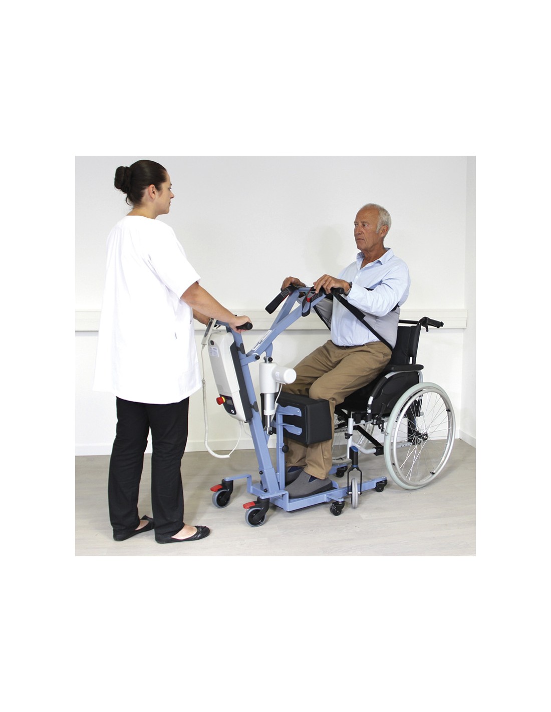 - Grúa domiciliaria de bipedestación 'Way up Blue' con arnés incluido