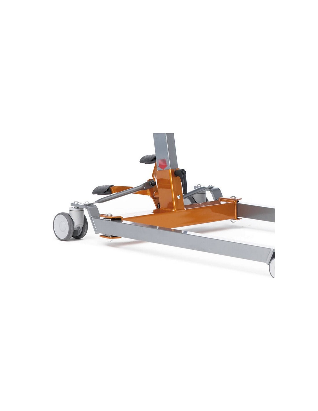 Las patas se abren y cierran presionando el pedal ergonómico con el pie para conseguir una mayor o menor anchura de la grúa.