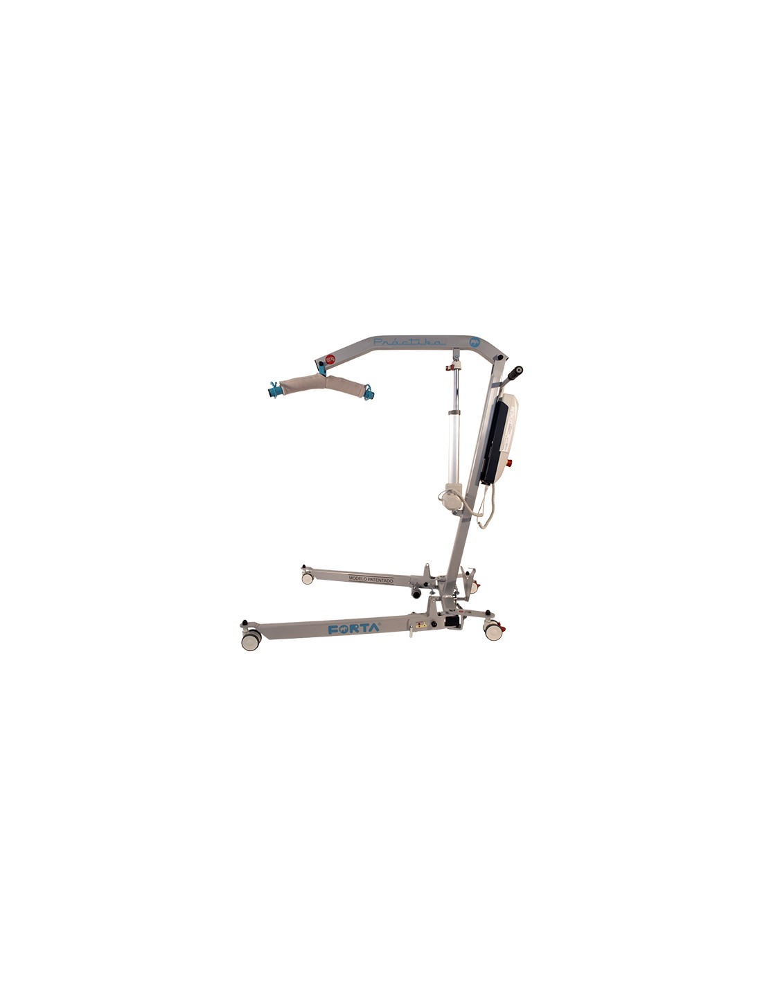 La grúa de elevación Práctika de Forta es única en el mercado gracias a varias características como son su plegado y su sistema de apertura de patas, patentado. El sistema de plegado de esta grúa le permite ser plegada y desplegada sin problema por una sola persona, sin necesidad de usar ningún tipo de herramientas.